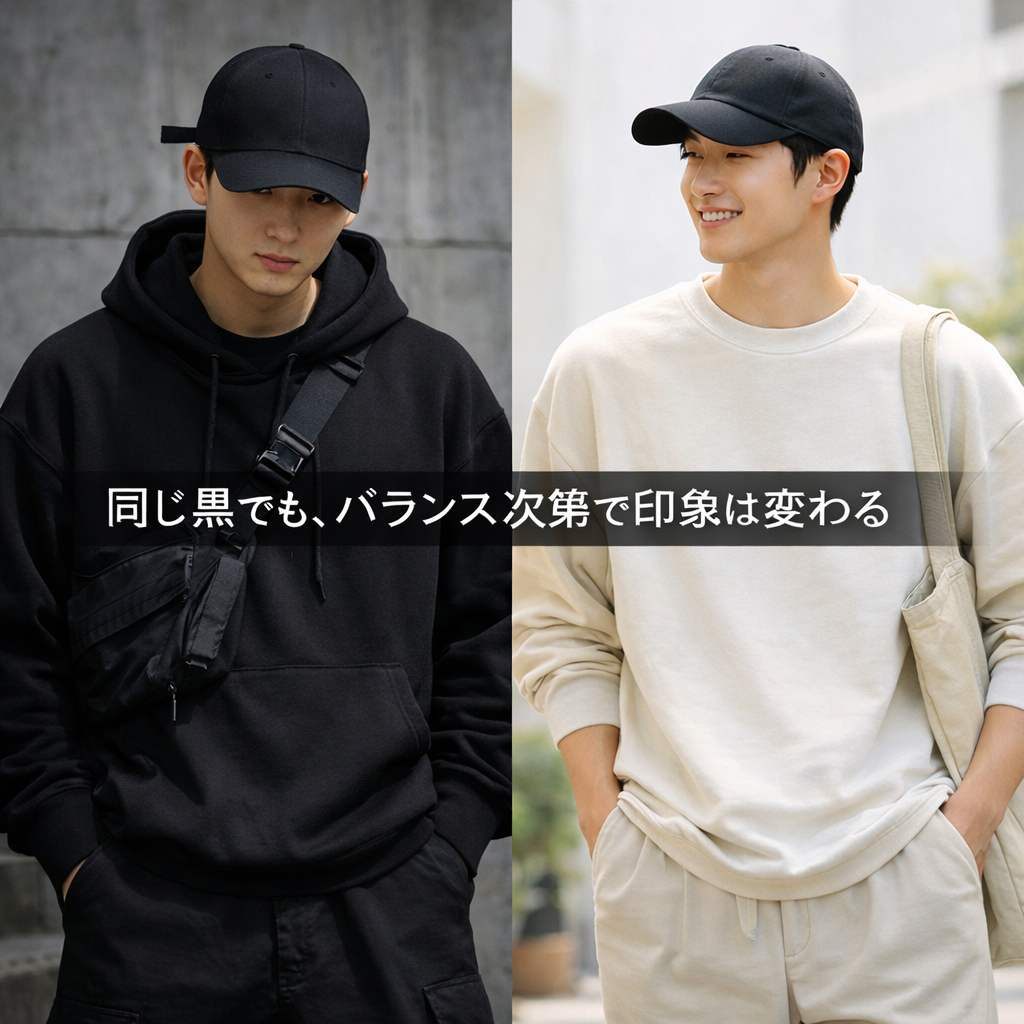 黒キャップが重く見える原因は被り方と全体バランス。春夏でも軽く見せるコツを解説。