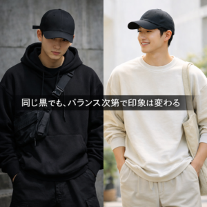 黒キャップが重く見える原因は色ではなくバランス。