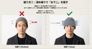 「安心感を出そうとして深く被る → 逆にズレやすくなる」 パターンです。