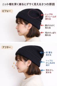 “防寒優先=深く被る”は見た目では逆効果になります。